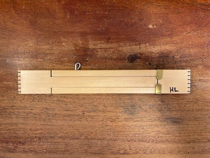 Udført i træ og metal. Beskyttelsesskinner i plastic. 1 cm. mellemrum Producent: Hjemmefabrikeret